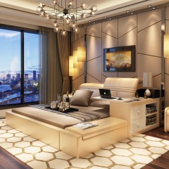 创意真皮床双人床现代婚床1.8米1.5榻榻米床储物床皮艺床软床大床 床侧储物 升降靠背 双ll价格 更低